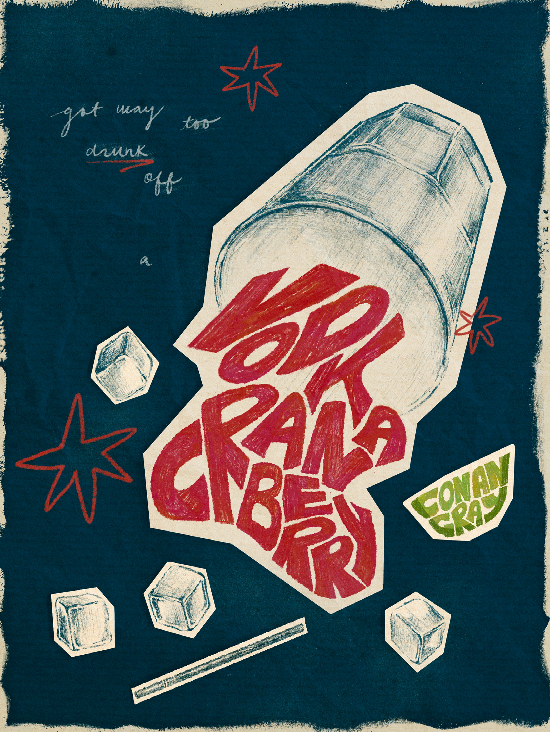 Illustration and mock merchandise design inspired by Conan Gray's single titled Vodka Cranberry.