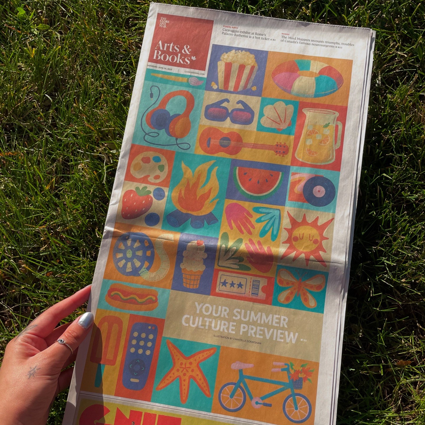 Cover illustration & 6 spot illustrations commisioned by The Globe and Mail as part of their Arts section. These illustrations were published in an article highlighting things their writers are excited to experience this summer. The lists include movies, TV shows, museums exhibits/galleries, theatre shows, live concerts and albums.