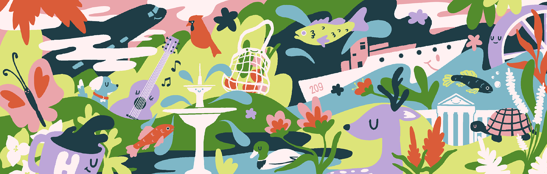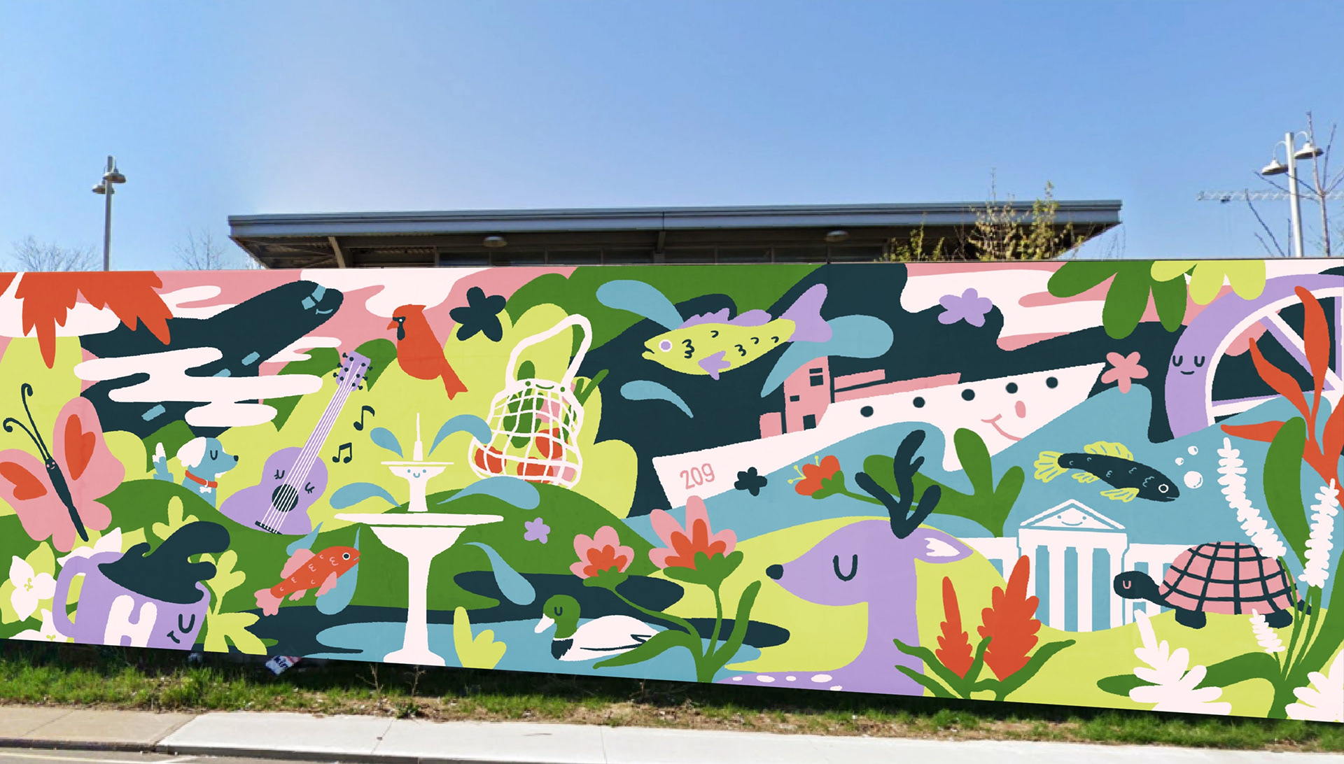 This mural concept was created in collaboration with STEPS Public Art as part of their 2025 CreateSpace Art Forum. Illustrated is a flourishing and bountiful space that represents the rich culture, natural world and communities of Hamilton.